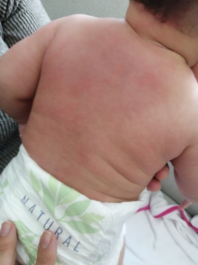 bebeğin sırtında kızarıklık.